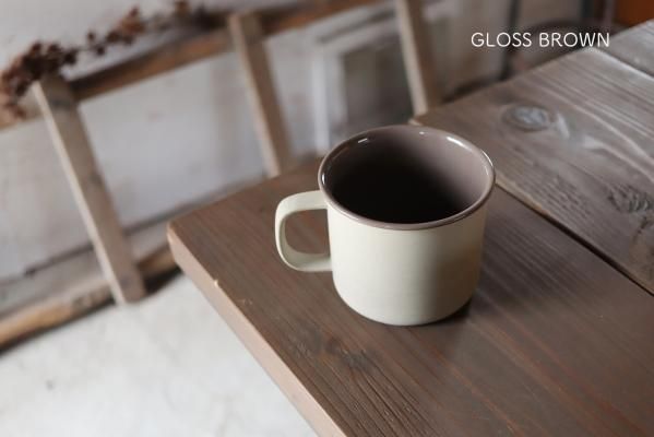 マグカップは、内側が影になり、GLOSSとMATの色の違いが写真では分かりにくいので、一緒に並べたプレートの色味を参考にして下さい。