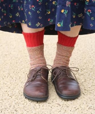 ※パイル側を表にして履く場合は、リブ部分を折り返して履いてください。写真参照