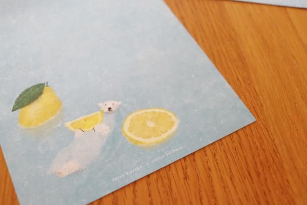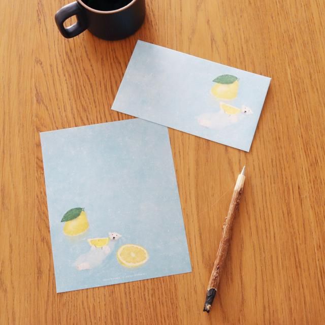 「待望のレモネード」という、なんとも素敵なタイトルのこちらのレターセットには、レモネードの海に浸かっているようなシロクマの姿が描かれています。