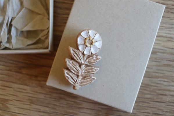 オーブン陶土でできているブローチは軽量で比較的丈夫ですので、お洋服やバッグ、帽子などに着けてお楽しみ下さい。