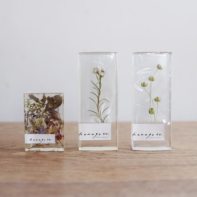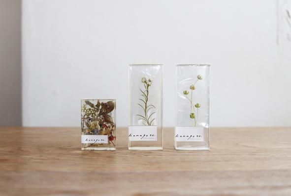 hanagoto.さんの手仕事で一つ一つ作られた、透明標本のようなオブジェ。