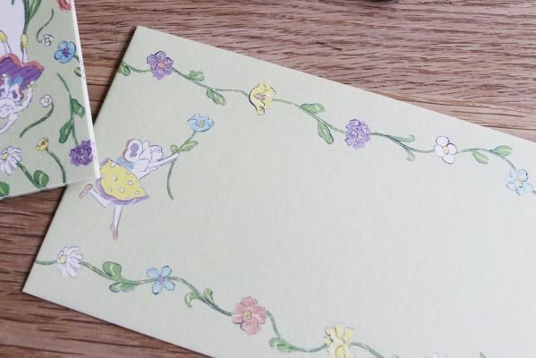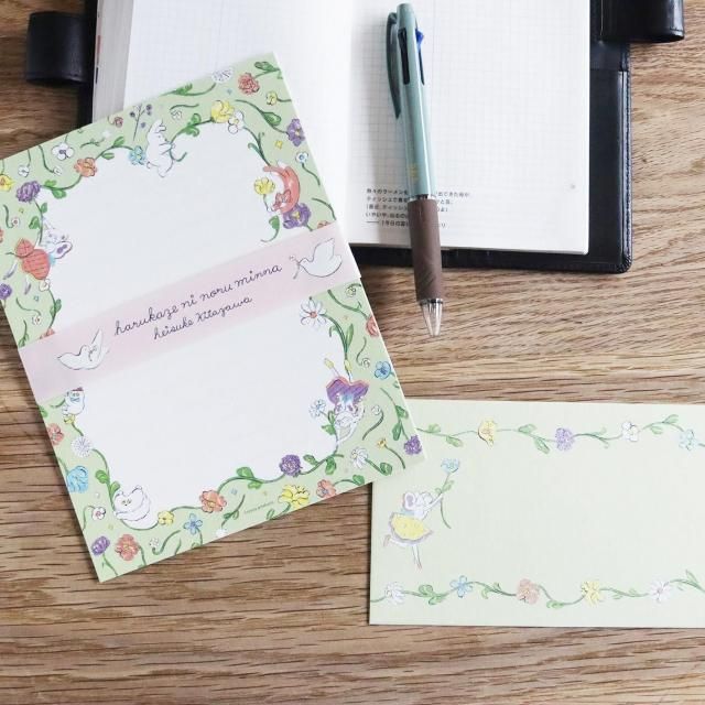 「はるかぜにのるみんな」とタイトルされたこちらのレターセットには、ふわふわふわりと春風を楽しむ姿が描かれています。