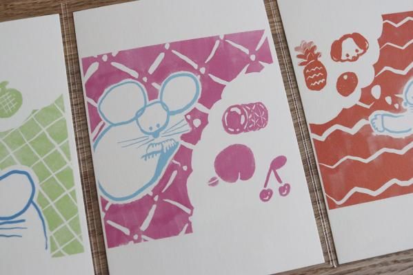 イラストは全てオリジナルで、布もの雑貨は、手刷りでプリントしてます!