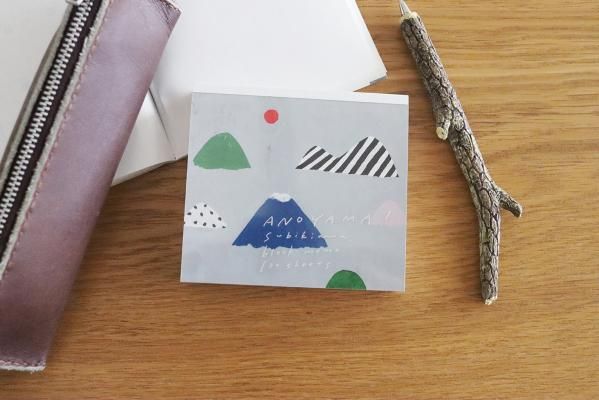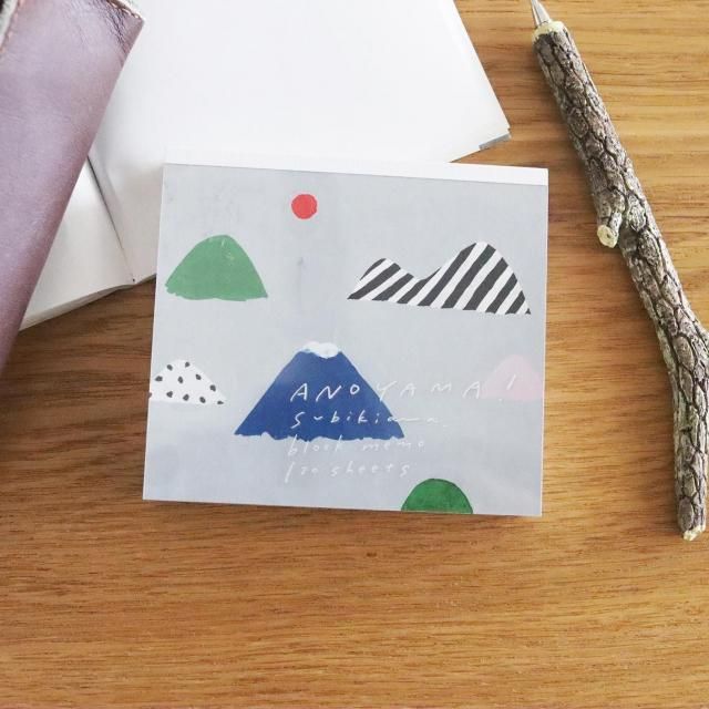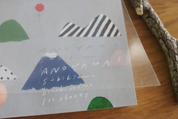 「ANOYAMA!」とタイトルされたこちらのブロックメモには、あの山、みて!というようなイラストがポップに描かれています。