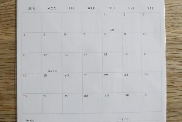 シンプルで使いやすい、ニマルイチさんのカレンダーが今年も入荷しました!