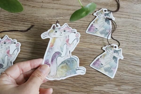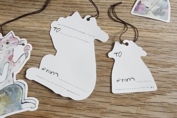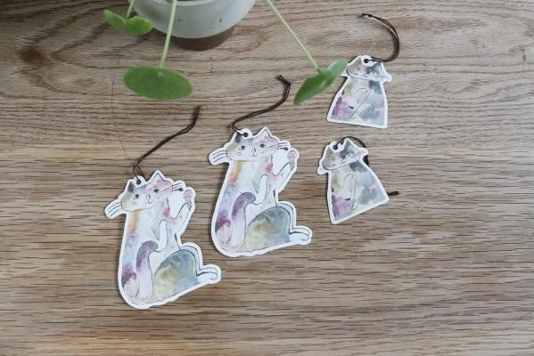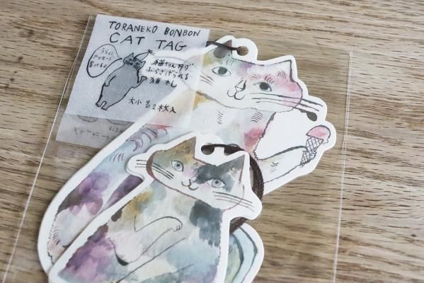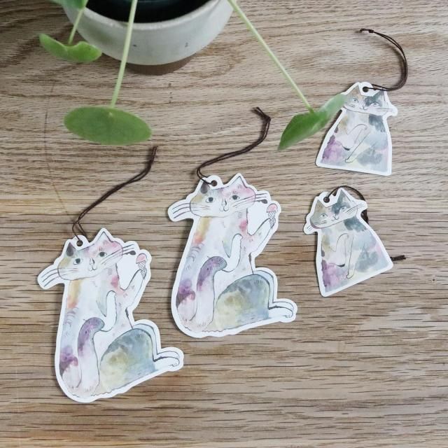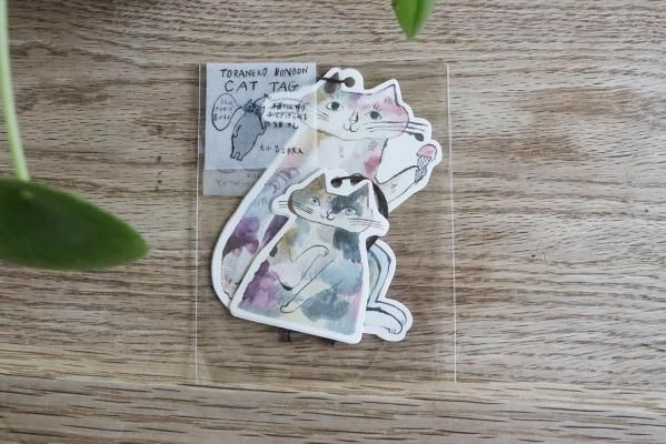 トラネコボンボンさんの猫の形に切り抜かれたタグセットです。