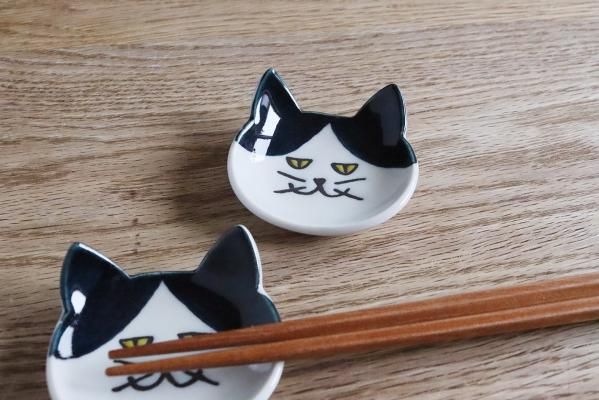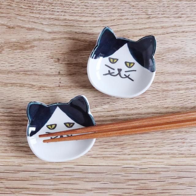 ちょっと目つきの悪い、ぶさかわぶちねこの箸置きです。
