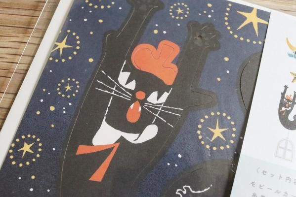 こちらは切れ込みの入ったカードからパーツを取り外し、付属の糸で結ぶと可愛いモビールになるグリーティングカードです!