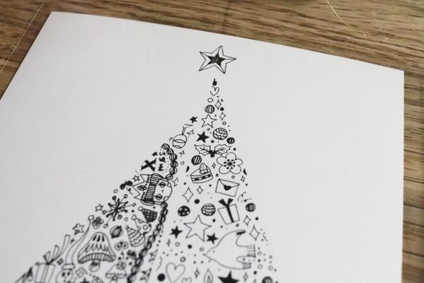 小さなイラストが集まってできたクリスマスツリーの絵柄は、ぜひインテリアとして壁に掛けたり、フォトフレームに入れてお楽しみください◎