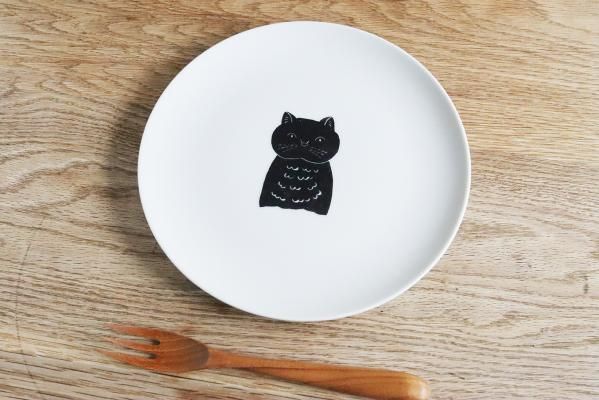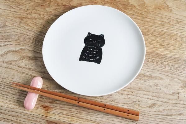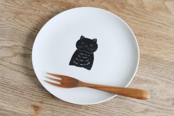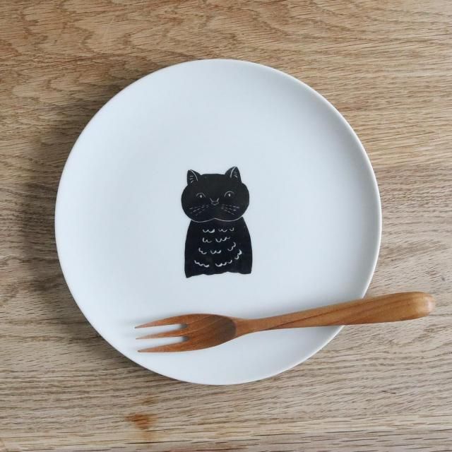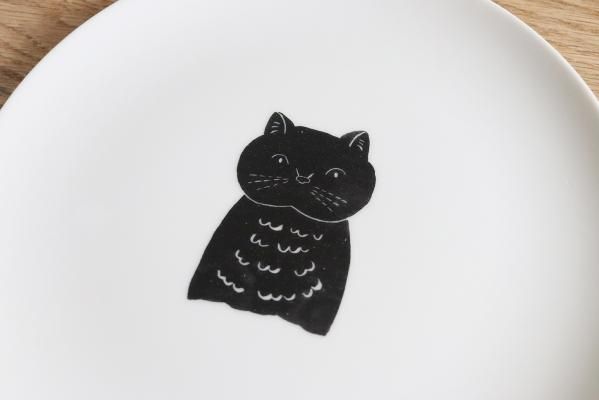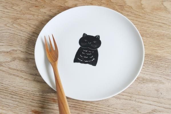 なんとも言えない表情の黒猫がシンプルに描かれたプレート。