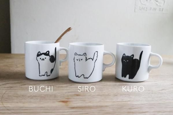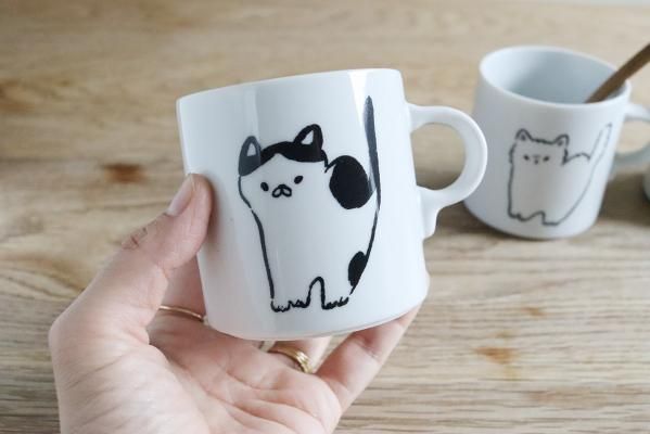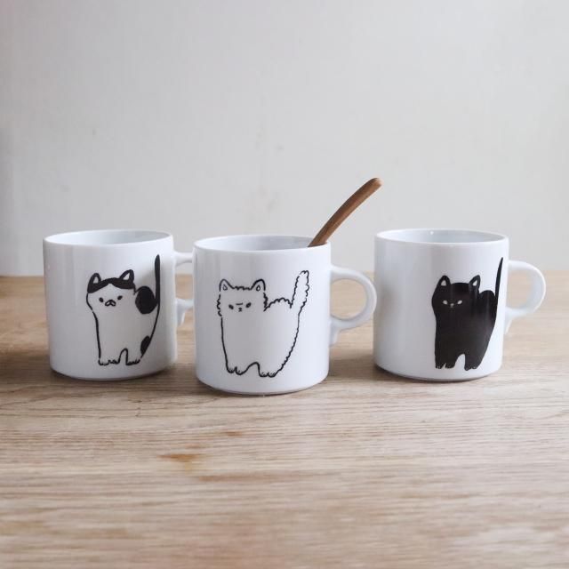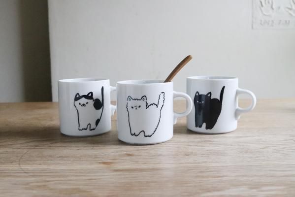 なんとも言えない表情の猫たちシンプルに描かれたマグカップ。