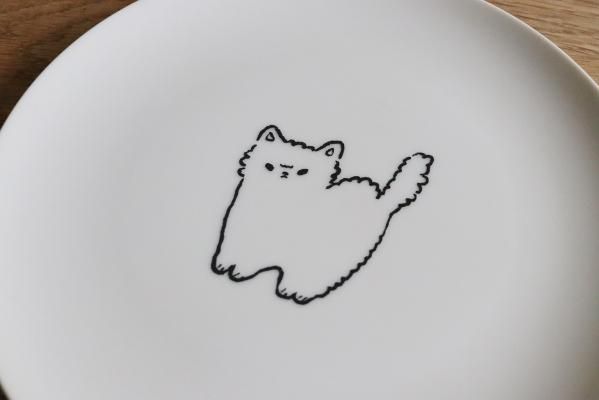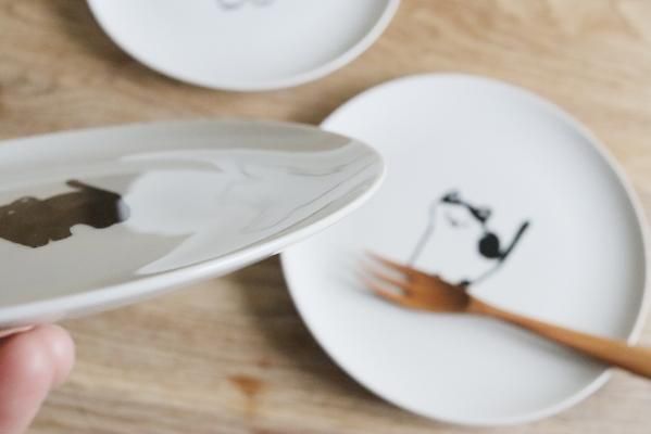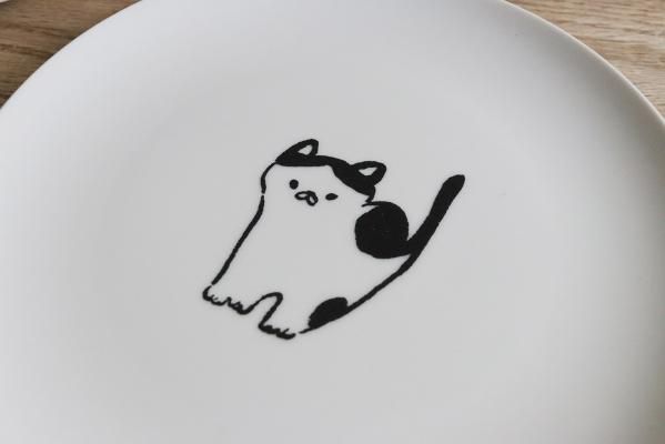 なんとも言えない表情の猫たちシンプルに描かれたプレート。