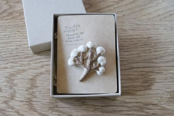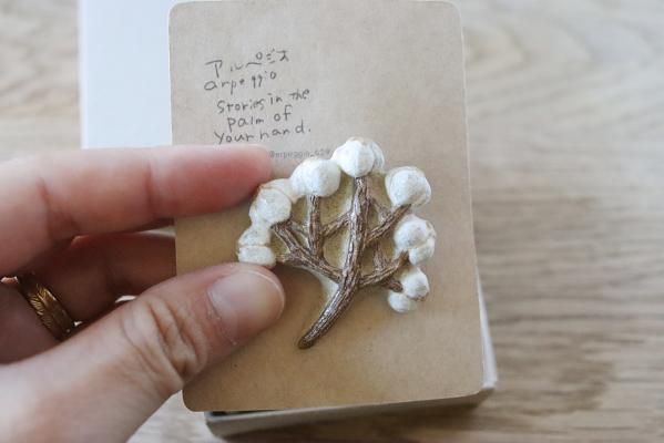 オーブン陶土でできているブローチは軽量で比較的丈夫ですので、お洋服やバッグ、帽子などに着けてお楽しみ下さい。
