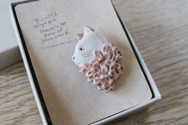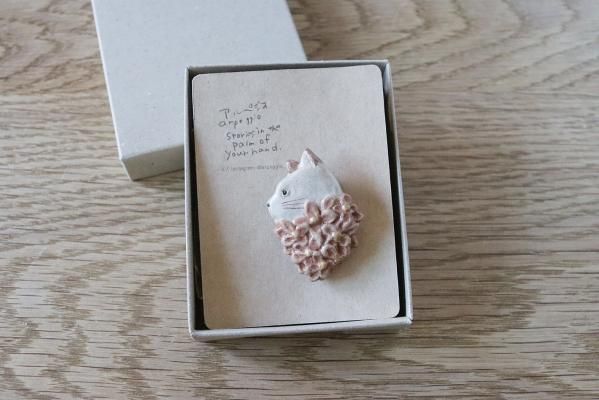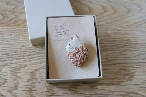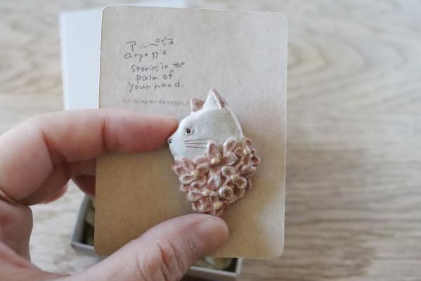 オーブン陶土でできているブローチは軽量で比較的丈夫ですので、お洋服やバッグ、帽子などに着けてお楽しみ下さい。