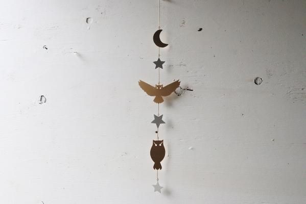 夜空に佇むフクロウがなんだか神秘的なガーランド。