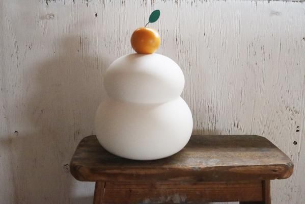 飾り紐とスノーマンの帽子、鏡餅の橙がセットされるので、お好みの飾り方をお楽しみいただけます。