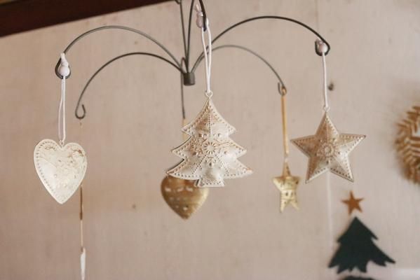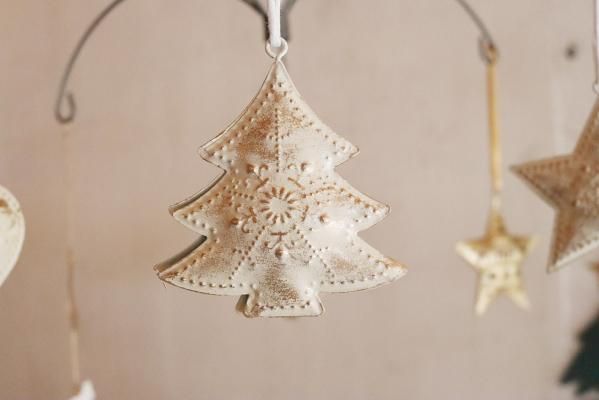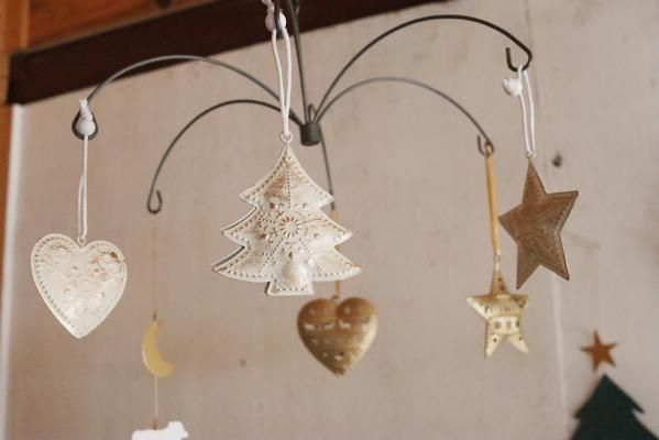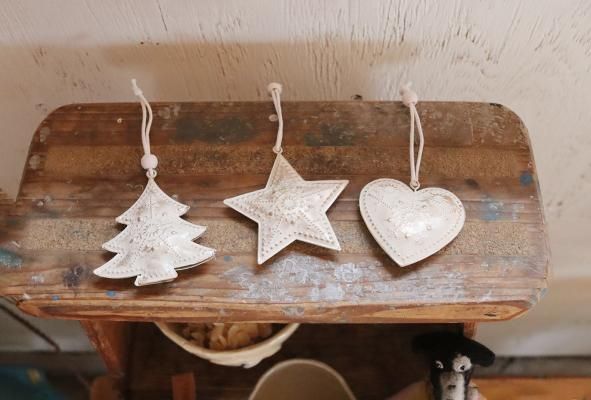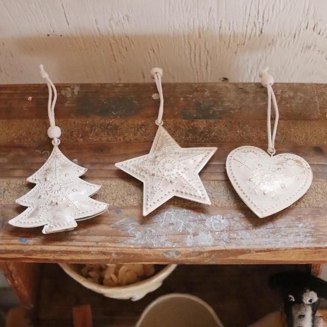 星、ハート、ツリーの3種類がセットになったスチール製のオーナメント。