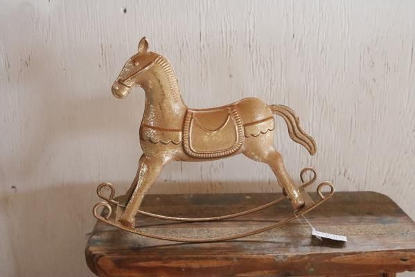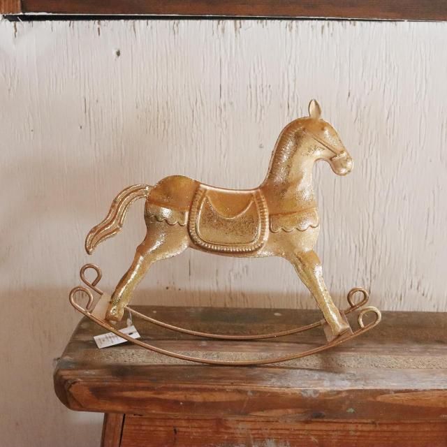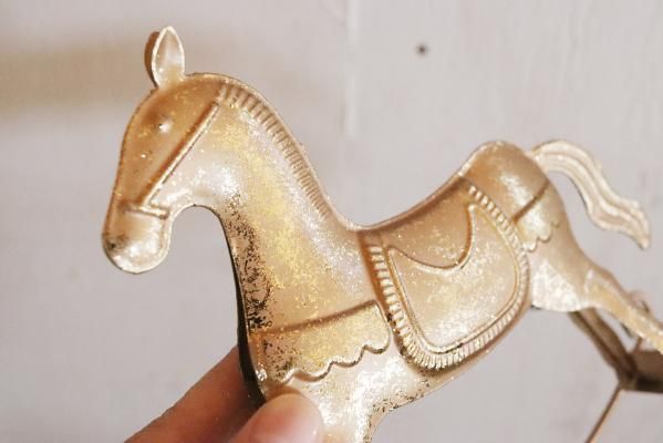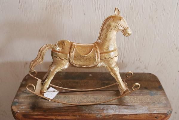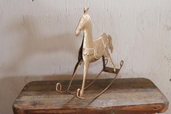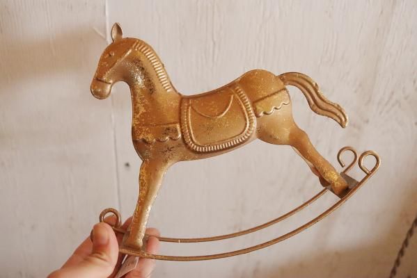 ヴィンテージ感漂う、揺れる可愛らしい木馬のオブジェ。