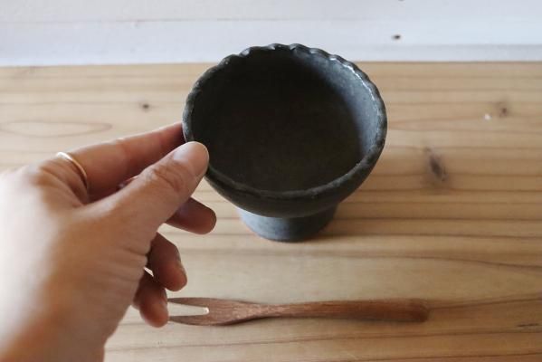 シックな色と風合い、でも縁取りは可愛らしく、そのバランスが絶妙なデザートカップです。