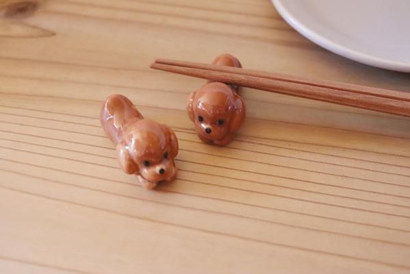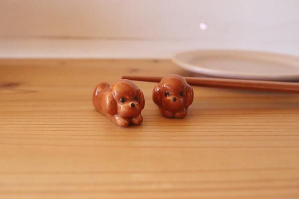 ミニチュアの置物のような可愛らしいトイプードルの箸置きです。