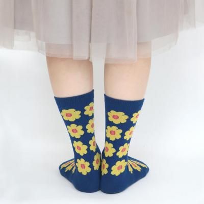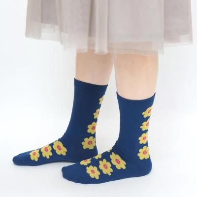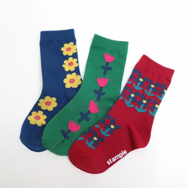 【レディース3足組靴下】チアフルフラワー クルーソックス