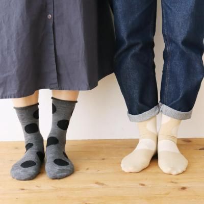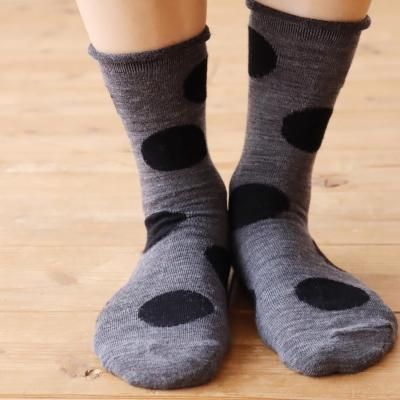 【レディース2足組靴下】メリノウール ドット クルーソックス