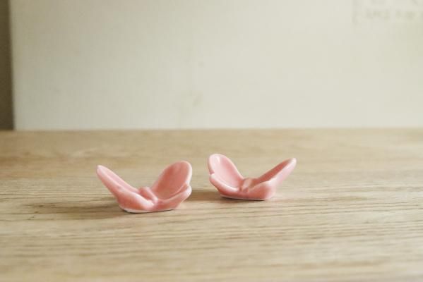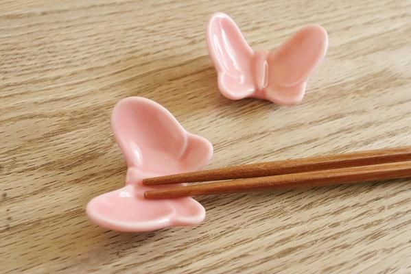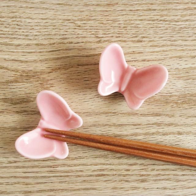 可愛らしいピンクのリボンのようなちょうちょの箸置きです。